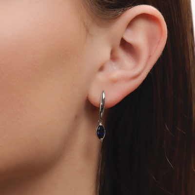 Серьги с 2 сапфирами синтетическими, 1.26 карат; Белое золото 585 пробы.