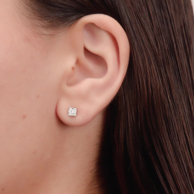 Серьги с 8 бриллиантами природными, 0.24 карат, огранка круг 57 граней, цвет 3, чистота 6, тип огранки А; Белое золото 585 пробы.