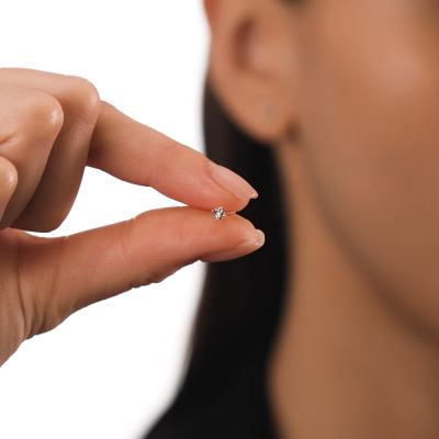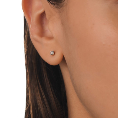 Серьги с 2 бриллиантами природными, 0.008 карат, огранка круг 17 граней, цвет 2, чистота 2, тип огранки А; Розовое золото 585 пробы.