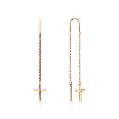 Серьги с 2 бриллиантами природными, 0.008 карат, огранка круг 17 граней, цвет 2, чистота 2, тип огранки А; Розовое золото 585 пробы.