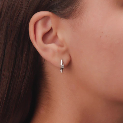 Серьги с 18 бриллиантами природными, 0.04 карат, огранка круг 17 граней, цвет 2, чистота 2, тип огранки А; Белое золото 585 пробы.
