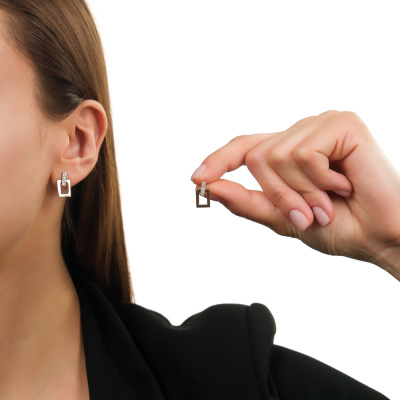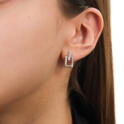 Серьги с 28 бриллиантами природными, 0.11 карат, огранка круг 17 граней, цвет 2, чистота 2, тип огранки А; Розовое золото 585 пробы.