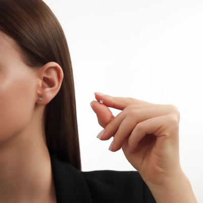Серьги с 18 бриллиантами природными, 0.03 карат, огранка круг 17 граней, цвет 2, чистота 2, тип огранки А; Белое золото 585 пробы.