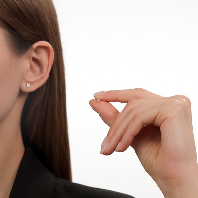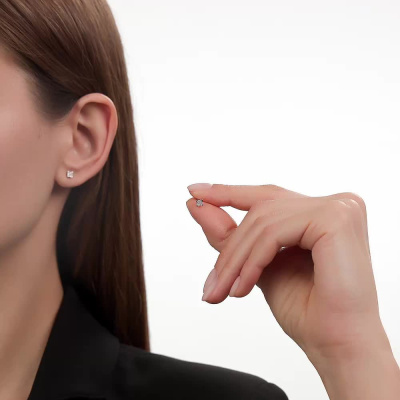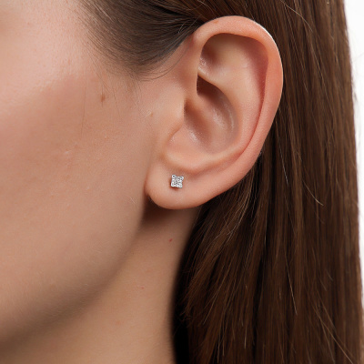 Серьги с 18 бриллиантами природными, 0.04 карат, огранка круг 17 граней, цвет 2, чистота 2, тип огранки А; Белое золото 585 пробы.