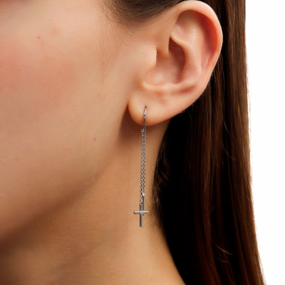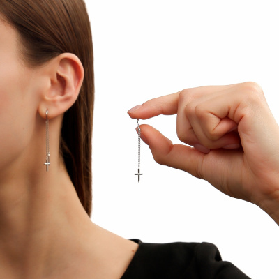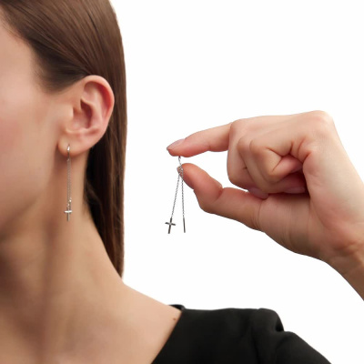 Серьги с 2 бриллиантами природными, 0.008 карат, огранка круг 17 граней, цвет 2, чистота 2, тип огранки А; Белое золото 585 пробы.