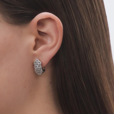 Серьги с 20 бриллиантами природными, 0.08 карат, огранка круг 17 граней, цвет 2, чистота 4, тип огранки Б; Серебро 925 пробы.