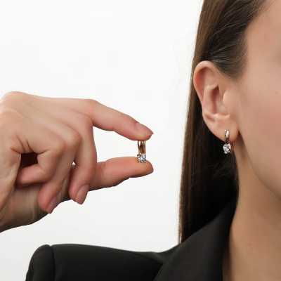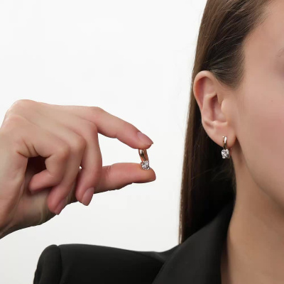 Серьги с 2 бриллиантами природными, 0.04 карат, огранка круг 57 граней, цвет 3, чистота 6; Розовое и белое золото 585 пробы.