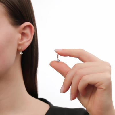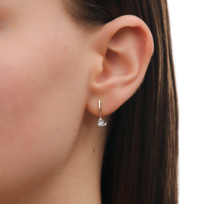 Серьги с 2 бриллиантами природными, 0.04 карат, огранка круг 57 граней, цвет 3, чистота 6; Розовое и белое золото 585 пробы.
