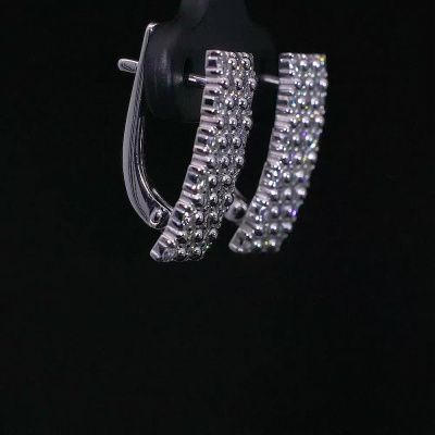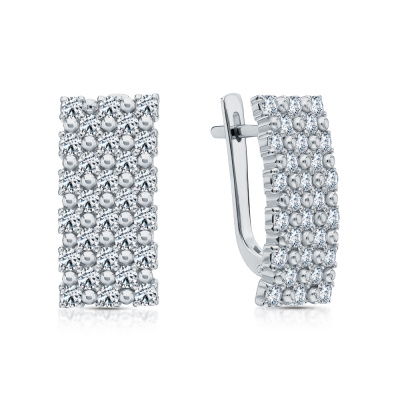 Серьги с 56 бриллиантами природными, 1.35 карат, огранка круг 57 граней, цвет 3, чистота 6, тип огранки А; Белое золото 585 пробы.