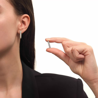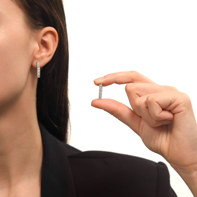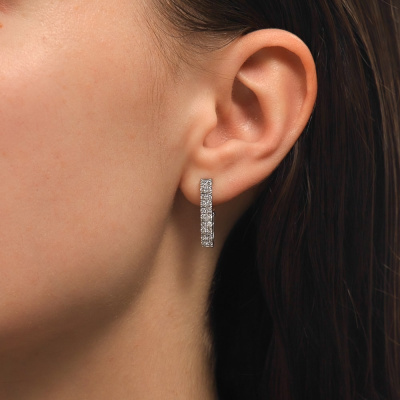 Серьги с 40 бриллиантами природными, 0.59 карат, огранка круг 57 граней, цвет 3, чистота 6, тип огранки А; Белое золото 585 пробы.