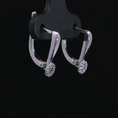 Серьги с 2 бриллиантами природными, 0.09 карат, огранка круг 57 граней, цвет 3, чистота 6, тип огранки А; 16 бриллиантами природными, 0.09 карат, огранка круг 57 граней, цвет 3, чистота 6, тип огранки А; Белое золото 585 пробы.