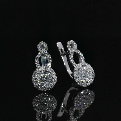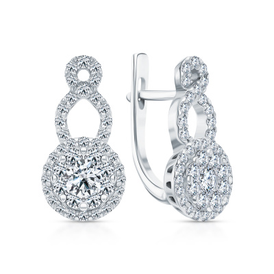 Серьги с 2 бриллиантами природными, 0.25 карат, огранка круг 57 граней, цвет 3, чистота 6, тип огранки А; 16 бриллиантами природными, 0.34 карат, огранка круг 57 граней, цвет 3, чистота 6, тип огранки А; 28 бриллиантами природными, 0.19 карат, огранка круг 57 граней, цвет 3, чистота 6, тип огранки А; 40 бриллиантами природными, 0.19 карат, огранка круг 57 граней, цвет 3, чистота 6, тип огранки А; Белое золото 585 пробы.