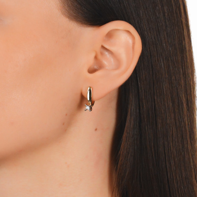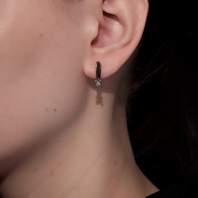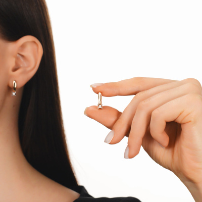 Серьги с 2 бриллиантами природными, 0.02 карат, огранка круг 57 граней, цвет 3, чистота 6, тип огранки А; Розовое и белое золото 585 пробы.
