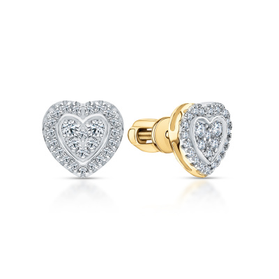 Серьги с 4 бриллиантами природными, 0.09 карат, огранка круг 57 граней, цвет 3, чистота 6, тип огранки А; 6 бриллиантами природными, 0.04 карат, огранка круг 57 граней, цвет 3, чистота 6, тип огранки А; 2 бриллиантами природными, 0.008 карат, огранка круг 17 граней, цвет 2, чистота 2, тип огранки А; 38 бриллиантами природными, 0.13 карат, огранка круг 17 граней, цвет 2, чистота 2, тип огранки А; Желтое золото 585 пробы.