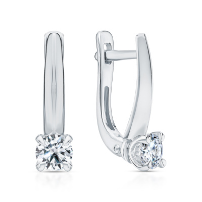 Серьги с 2 бриллиантами природными, 0.64 карат, огранка круг 57 граней, цвет 3, чистота 6, тип огранки А; Белое золото 585 пробы.