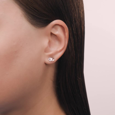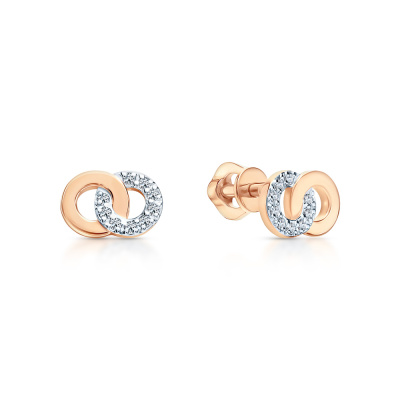 Серьги с 18 бриллиантами природными, 0.05 карат, огранка круг 17 граней, цвет 2, чистота 2, тип огранки А; Розовое золото 585 пробы.