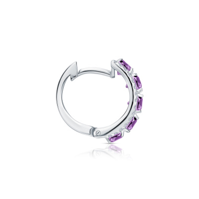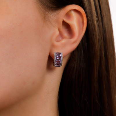Серьги с 60 бриллиантами природными, 0.21 карат, огранка круг 17 граней, цвет 2, чистота 2, тип огранки А; 10 аметистами природными, 2.73 карат; Белое золото 585 пробы.
