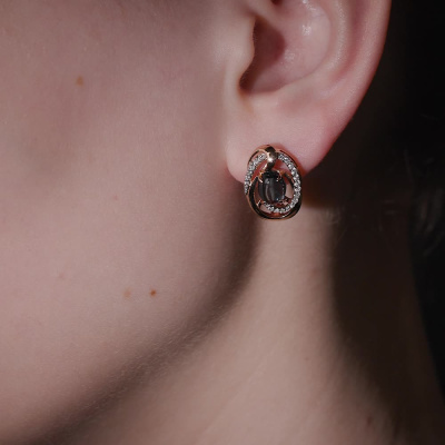Серьги с 24 бриллиантами природными, 0.16 карат, огранка круг 57 граней, цвет 3, чистота 5, тип огранки А; 16 бриллиантами природными, 0.07 карат, огранка круг 57 граней, цвет 3, чистота 5, тип огранки А; 2 топазами лондон природными, 3.68 карат; золото 585 пробы.