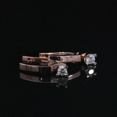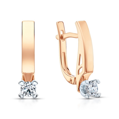 Серьги с 2 бриллиантами природными, 0.32 карат, огранка круг 57 граней, цвет 4, чистота 6, тип огранки А; Розовое и белое золото 585 пробы.