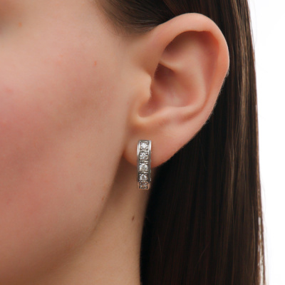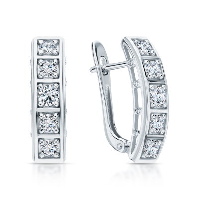 Серьги с 2 бриллиантами природными, 0.2 карат, огранка круг 57 граней, цвет 3, чистота 6, тип огранки А; 8 бриллиантами природными, 0.43 карат, огранка круг 57 граней, цвет 3, чистота 6, тип огранки А; 16 бриллиантами природными, 0.04 карат, огранка круг 17 граней, цвет 2, чистота 2, тип огранки Б; Белое золото 585 пробы.