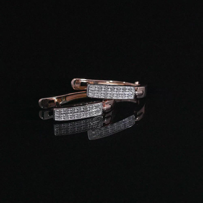 Серьги с 28 бриллиантами природными, 0.08 карат, огранка круг 17 граней, цвет 2, чистота 2, тип огранки А; Розовое золото 585 пробы.