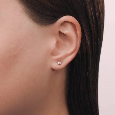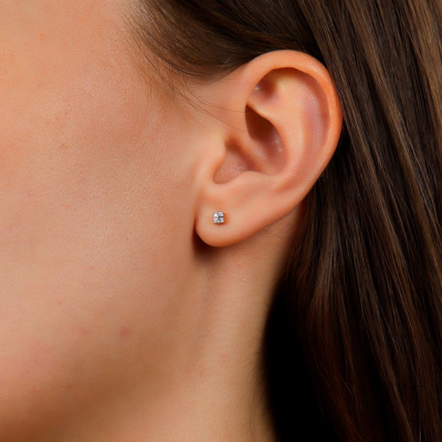 Серьги с 8 бриллиантами природными, 0.06 карат, огранка круг 57 граней, цвет 4, чистота 5, тип огранки А; Розовое золото 585 пробы.
