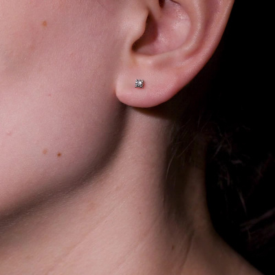 Серьги с 2 бриллиантами природными, 0.2 карат, огранка круг 57 граней, цвет 3, чистота 6, тип огранки А; Платина 950 пробы.