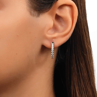Серьги с 30 бриллиантами природными, 1.34 карат, огранка круг 57 граней, цвет 3, чистота 6, тип огранки А; Платина 950 пробы.