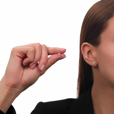 Серьги с 2 бриллиантами природными, 0.6 карат, огранка сердце 57 граней, цвет 3, чистота 6, тип огранки А; Белое золото 585 пробы.