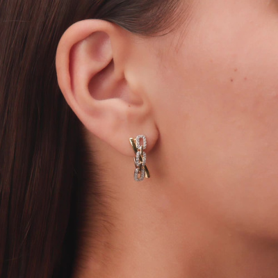 Серьги с 64 бриллиантами природными, 0.21 карат, огранка круг 17 граней, цвет 2, чистота 2, тип огранки А; Желтое золото 585 пробы.