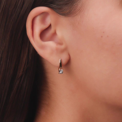 Серьги с 2 бриллиантами природными, 0.04 карат, огранка круг 57 граней, цвет 3, чистота 6, тип огранки А; Розовое и белое золото 585 пробы.