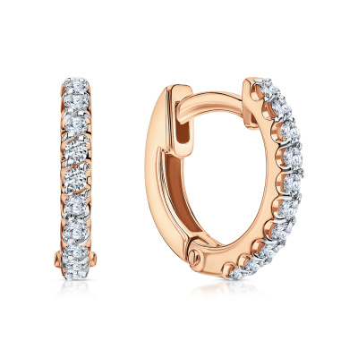 Серьги с 20 бриллиантами природными, 0.14 карат, огранка круг 57 граней, цвет 4, чистота 6, тип огранки А; Розовое золото 585 пробы.
