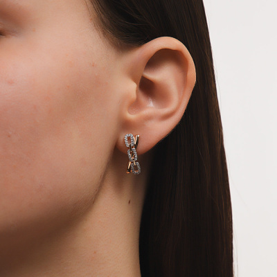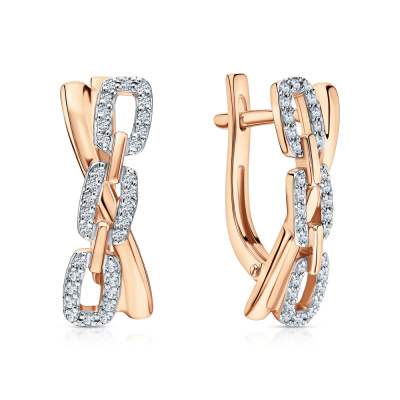 Серьги с 64 бриллиантами природными, 0.21 карат, огранка круг 17 граней, цвет 2, чистота 2, тип огранки А; Розовое золото 585 пробы.