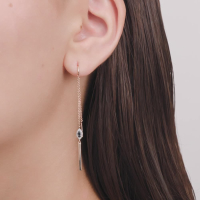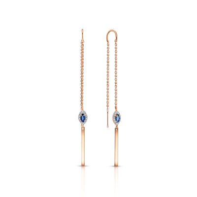 Серьги с 28 бриллиантами природными, 0.04 карат, огранка круг 17 граней, цвет 2, чистота 2; 2 сапфирами природными, 0.17 карат, цвет 2, чистота 2; Розовое золото 585 пробы.