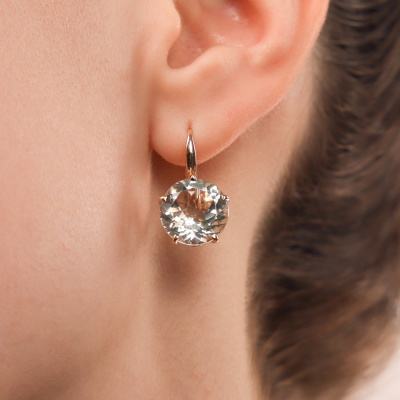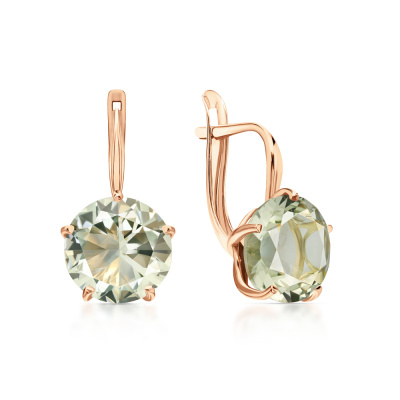 Серьги с 2 аметистами зелеными, 10.2 карат; Розовое золото 585 пробы.