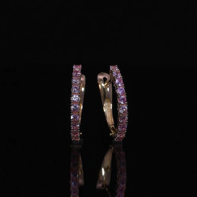 Серьги с 20 сапфирами розовыми природными, 0.72 карат, тип огранки В; Розовое золото 585 пробы.