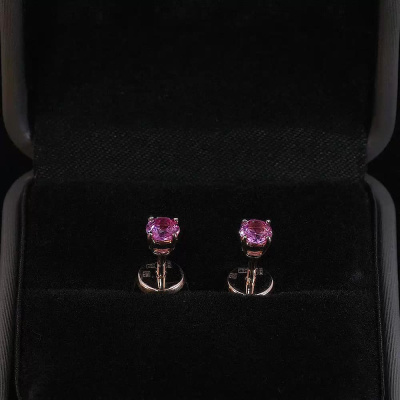 Серьги с 2 сапфирами розовыми природными, 0.55 карат, тип огранки В; Розовое золото 585 пробы.
