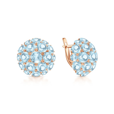 Серьги с 2 топазами скай природными, 1.16 карат; 12 топазами скай природными, 5.2 карат; 12 топазами скай природными, 3.47 карат; 12 топазами скай природными, 1.78 карат; Розовое золото 585 пробы.