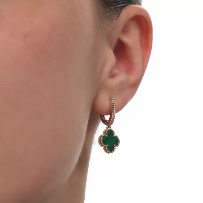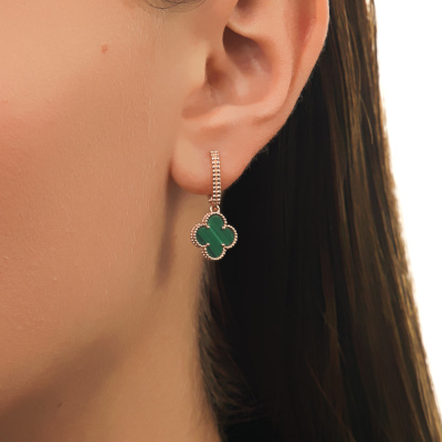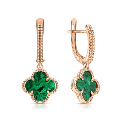 Серьги с 2 малахитами, 3.33 карат; Розовое золото 585 пробы.