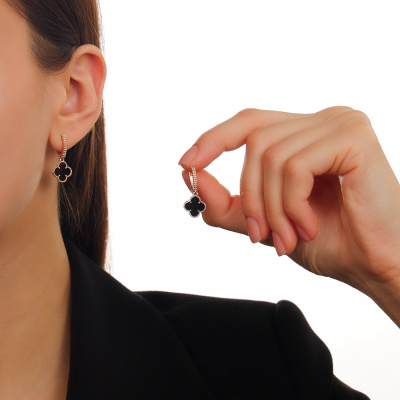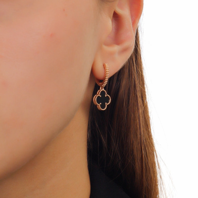 Серьги с 2 ониксами черными природными, 2.24 карат; Розовое золото 585 пробы.