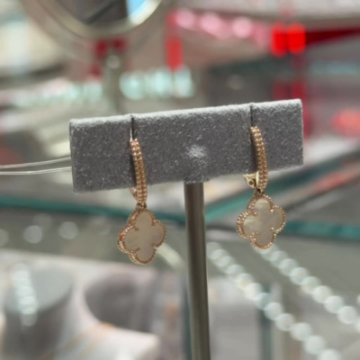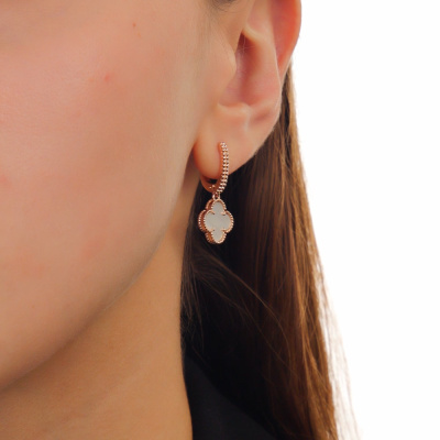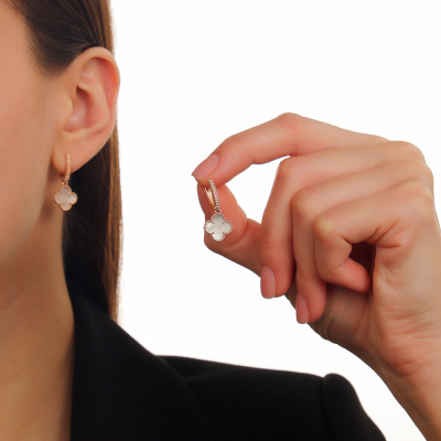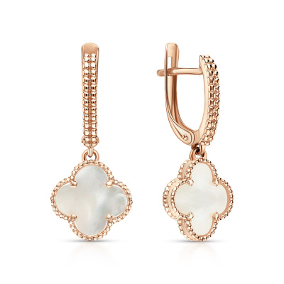 Серьги с 2 перламутрами белыми природными, 2.31 карат; Розовое золото 585 пробы.