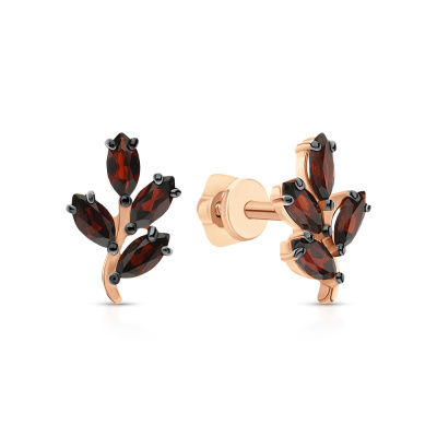 Золотые серьги с гранатами природными