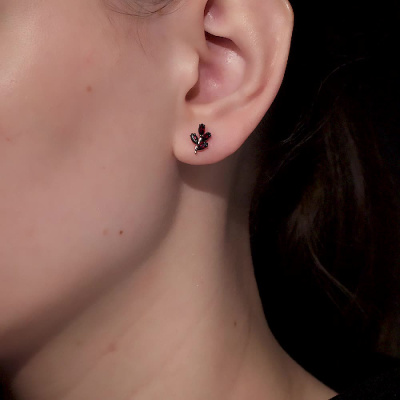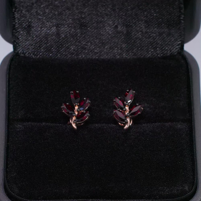 Серьги с 8 гранатами природными, 0.75 карат; Розовое золото 585 пробы.