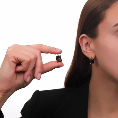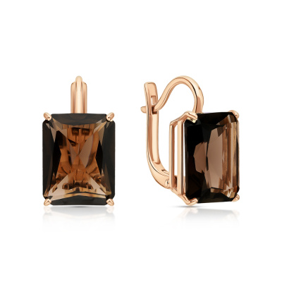 Серьги с 2 кварцами дымчатыми природными, 9.93 карат; Розовое золото 585 пробы.