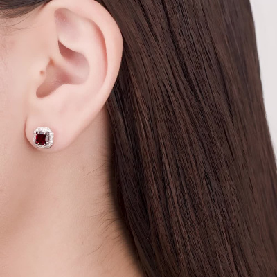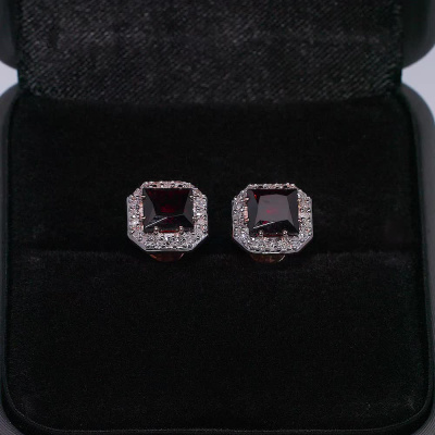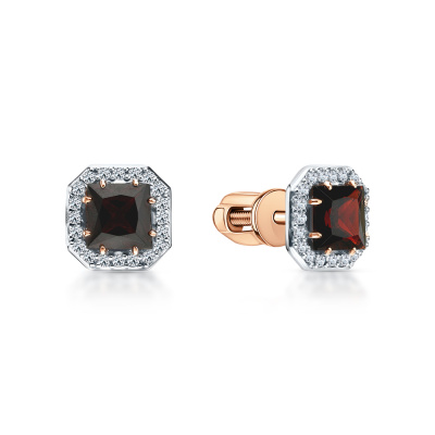 Серьги с 40 бриллиантами природными, 0.16 карат, огранка круг 17 граней, цвет 2, чистота 2, тип огранки А; 2 гранатами природными, 1.63 карат; Розовое золото 585 пробы.