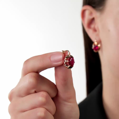Серьги с 2 рубинами синтетическими, 5.83 карат; Розовое золото 585 пробы.