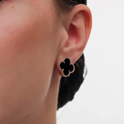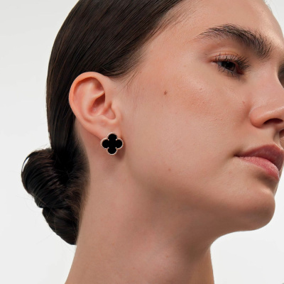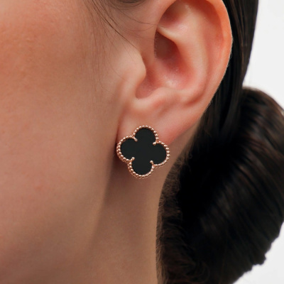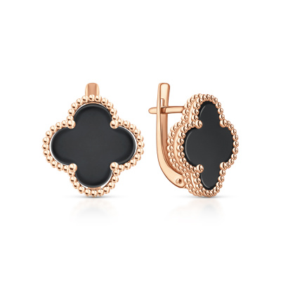 Серьги с 2 агатами черными природными; Розовое золото 585 пробы.
