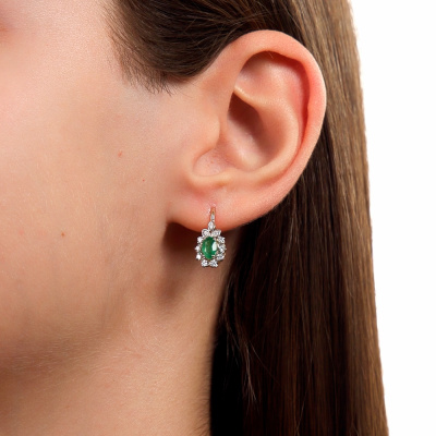 Золотые серьги с бриллиантами природными и изумрудами природными