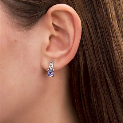 Серьги с 2 бриллиантами природными, 0.06 карат, огранка круг 57 граней, цвет 4, чистота 5, тип огранки А; 2 бриллиантами природными, 0.04 карат, огранка круг 57 граней, цвет 4, чистота 5, тип огранки А; 2 бриллиантами природными, 0.03 карат, огранка круг 57 граней, цвет 4, чистота 5, тип огранки А; 2 танзанитами природными, 1.75 карат; Белое золото 585 пробы.