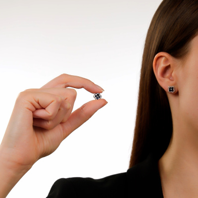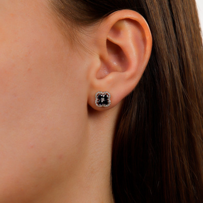 Серьги с 48 бриллиантами природными, 0.13 карат, огранка круг 17 граней, цвет 2, чистота 2, тип огранки А; 8 сапфирами природными, 0.8 карат, цвет 2, чистота 2, тип огранки В; Розовое золото 585 пробы.